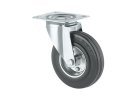 Önbeálló görgő totálfékkel, fékpedál a menetiránnyal ellentétesen, Préseltacéllemez villaszerkezet, cinkkromátozott, dupla golyósoros csapágy anyakban, csavarozott tengely,...