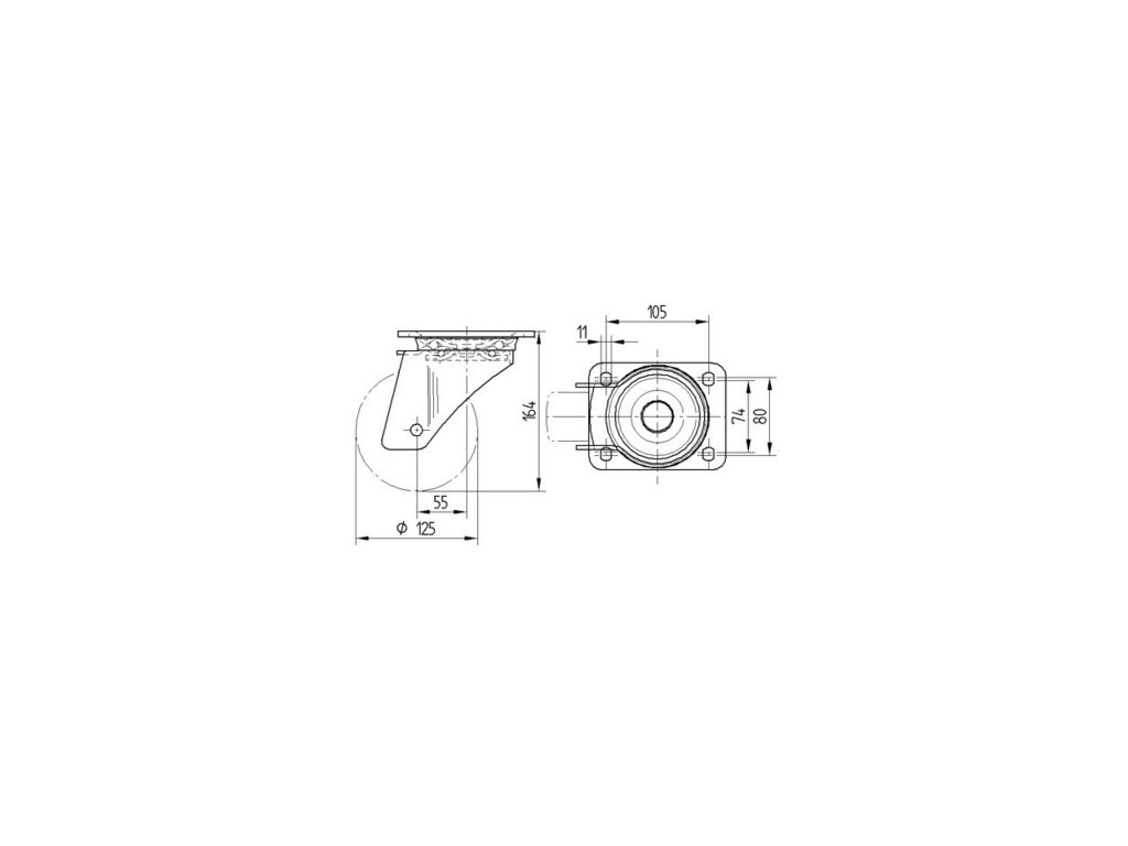 Nagy teherbírású görgők 125mm, önbeálló,Talplemezzel, 4680ITP125P63